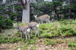 | 勝手知ったる知床五湖の木道を先頭切って歩き出します。湖面が 凍り、背景の知床連山が雪に覆われているのが印象的ですが、 最初に訪れた時ほどの感動はないようです。木道が冬季閉鎖の 寸前で幸いにも歩けたのですが、行程表に閉鎖の場合は知床 自然センターにご案内?ところがそのセンターは早々と閉鎖されて いたのです。もしどちらも閉鎖されていたら、何のためにこちらまで 来たのが分からなくなります。こちらでも鹿に遭遇ですが、夏の鹿と 毛色が全く違うのです。夏は木漏れ日に合わせてバンビの模様 だったのが地味な毛一色になって、少しも可愛くないのです。 |